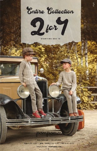 Entire Collection 2 1 for ST ARTIN G DEC 18 5603 PARC AVE // 514.447.8880 SUN 12:00 - 5:00 // MON - THURS 11:00 - 5:30 // FRI 10:30 - 12:00 SHOP ONLINE - POMPOMME.COM 9