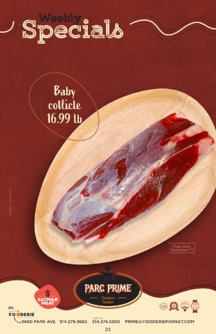 Baby collicle 16.99 lb *Sale ends December 27 Call/Text 6680 PARK AVE 514.279.3663 514.274.5200 PRIME@FOODERIEMARKET.COM 23