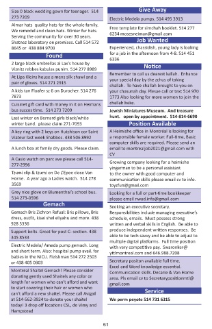 donating gently used Shaitels any color or area. Pls email cv to Secretarypositionmtl@