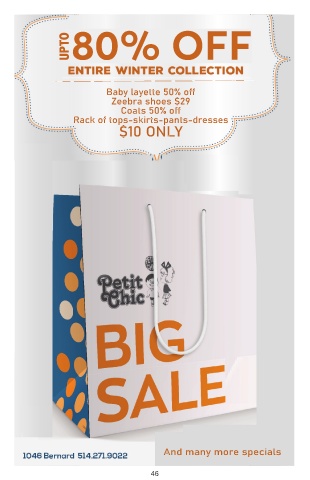 UPTO 80% OFF Baby layette 50% off Zeebra shoes 29 Coats 50% off Rack of tops-skirts-pants-dresses 10 ONLY And many more specials 46