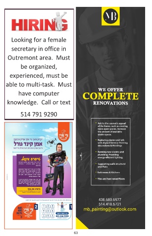 Looking for a female secretary in office in Outremont area. Must be organized, experienced, must be able to multi-task. Must have computer knowledge. Call or text 514 791 9290 63
