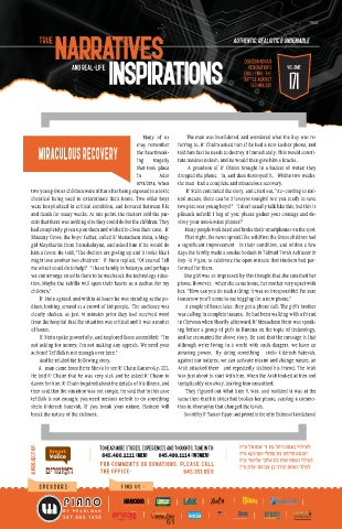 and death for many weeks. At one point, the doctors told the par- pikuach nefesh! I beg of you: please gather your courage and de-