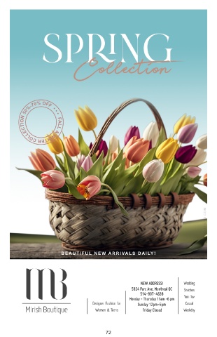 FALL & WINTER COLLECTION 50%-70% OFF • • • BEAUTIFUL NEW ARRIVALS DAILY! NEW ADDRESS! 5824 Parc Ave, Montreal QC 514-807-4638 Monday - Thursday 11am -6 pm Sunday 12pm-5pm Friday Closed 72