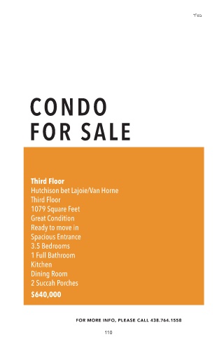 FOR MORE INFO, PLEASE CALL 438.764.1558