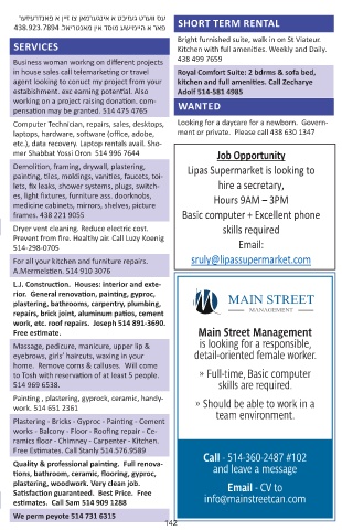 of Beis Yaakov Seminary. 514 692 0076 lets, fix leaks, shower systems, plugs, switch- hire a secretary,