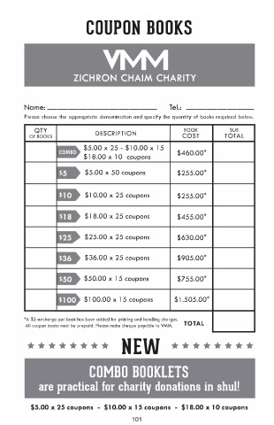 VMM - FOR UPTOWN AREA AII coupon books must be prepaid. Please make cheque payable to VMM. TOTA L