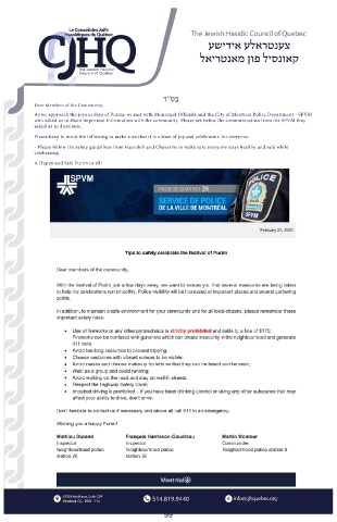 As we approach the joyous days of Purim, we met with Municipal Officials and the City of Montreal Police Department - SPVM
