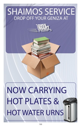 SHAIMOS SERVICE DROP OFF YOUR GENIZA AT NOW CARRYING HOT PLATES & HOT WATER URNS 130