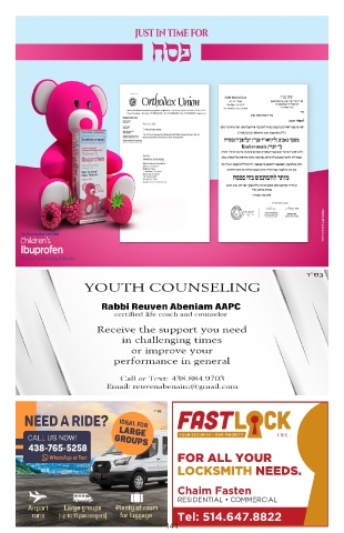 just in time for חספ Endorsed by all leading Rabbonim YOUR SECURITY - OUR PRIORITY INC. FOR ALL YOUR LOCKSMITH NEEDS. Chaim Fasten RESIDENTIAL • COMMERCIAL Tel: 514.647.8822 141