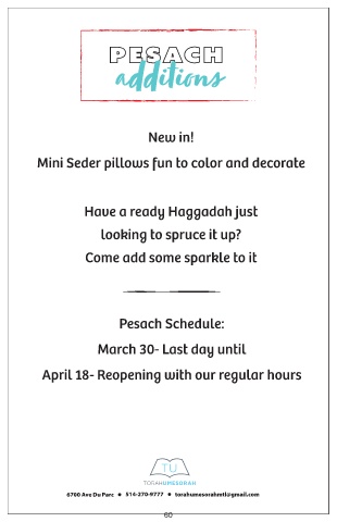 6700 Ave Du Parc 514-270-9777 torahumesorahmtl@gmail.com