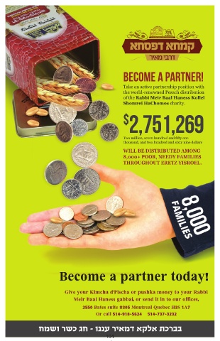 the world-renowned Pesach distribution ריאמ יבר תקדצ ןופ הקולח