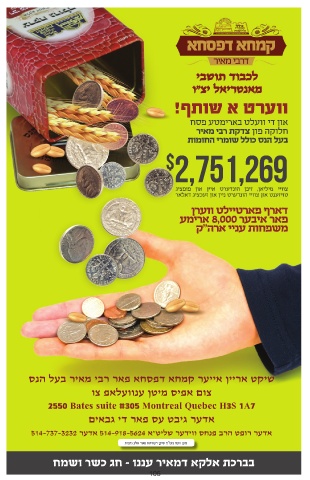 the world-renowned Pesach distribution ריאמ יבר תקדצ ןופ הקולח