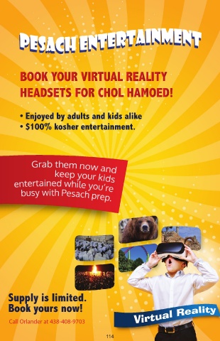 • Enjoyed by adults and kids alike • $100% kosher entertainment. Supply is limited. Book yours now! Call Orlander at 438-408-9703 114
