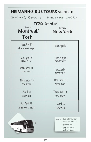 HEIMANN’S BUS TOURS SCHEDULE
