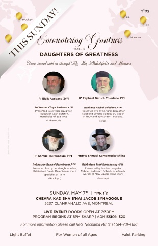 For more information please call Reb. Nechama Mintz at 514-781-4616