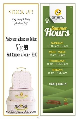 O STCKU P ! Sunday, Monday & Tuesday (all sales are final) Past season Velours and Cottons 5 for 99 Knit Rompers w/bonnet : 35.00 Petite Etoile 160 Saint Viateur Suite # 402 81