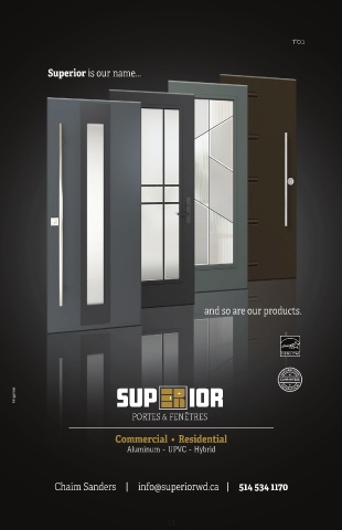 ד״סב Superior is our name... PORTES & FENÊTRES and so are our products. DOORS & WINDOWS PORTES & FENÊTRES Commercial • Residential Aluminum - UPVC - Hybrid Chaim Sanders | info@superiorwd.ca | 514 534 1170 13