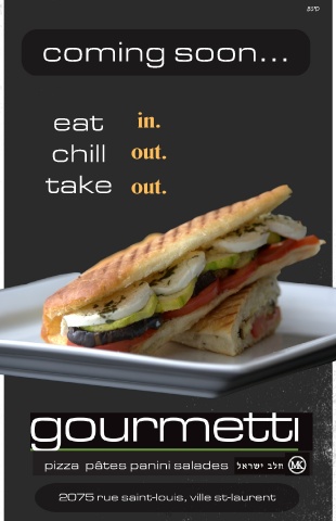 BS"D coming soon... eat in. chill out. take out. pizza pâtes panini salades 2075 rue saint-louis, ville st-laurent 16