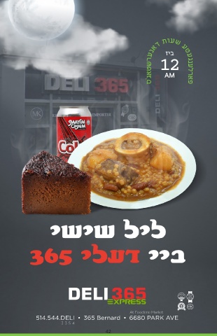 ס'גאטשרענאד תועש זיב 12 AM עטעגנעלראפ At Fooderie Market 514.544.DELI • 365 Bernard • 6680 PARK AVE 33 54 42