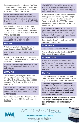 Always fresh. Best hechsherim. 514 272 6804 Please call Avigail at 514-562-3924 to donate