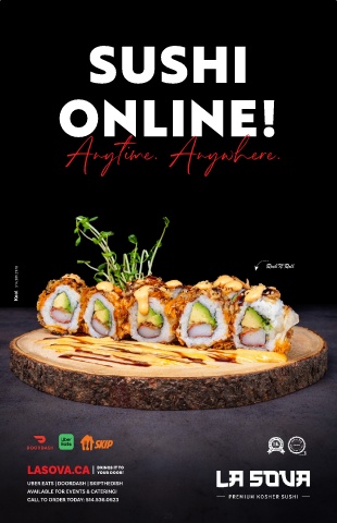 SUSHI ONLINE! Anytime. Anywhere. Rock'N'Roll Kool 514.501.2178 LASOVA.CA BRINGS IT TO YOUR DOOR! UBER EATS | DOORDASH | SKIPTHEDISH AVAILABLE FOR EVENTS & CATERING! CALL TO ORDER TODAY: 514.536.0523 29