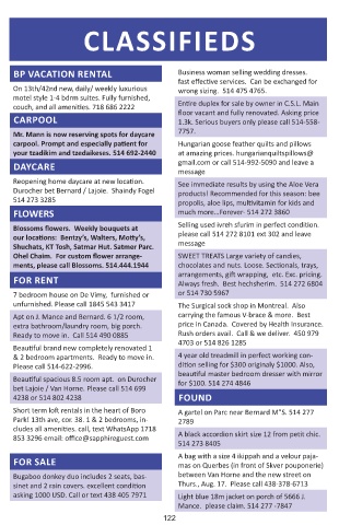 our locations: Bentzy’s, Walters, Motty’s, please call 514 272 8101 ext 302 and leave