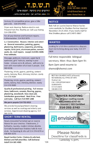 work, etc. roof repairs. Joseph 514 891-3690. Advertise it in the free