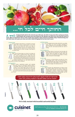 2.Chef’s knives, arms from fatigue. The 8” Victorinox chef’s knife 6.Cake knif e foods and peels with ease but will tear meat and