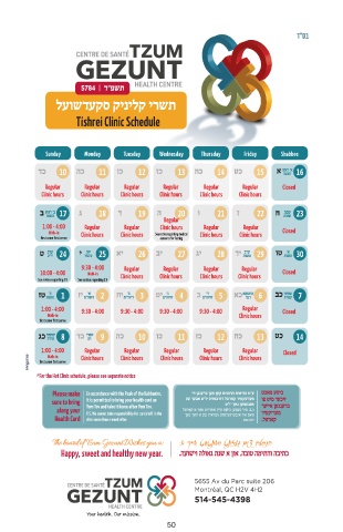 Tishrei Clinic Schedule