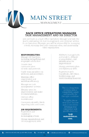 6700 Park Ave #200, Mtl, Qc, H2V 4H9, Canada 514-360-2487 Info@mainstreetcan.com www.mainstreetcan.com