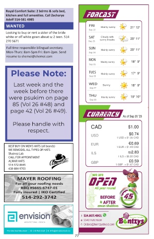 as cooking and elder care services. 514 966 CALL FOR APPOINTMENT 1 ILS = $0.35 CAD