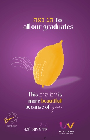 האנ גח to all our graduates This בוט םוי is more beautiful because of you BE THE NEXT TO GRADUATE -Kaila UPCOMING COURSE AFTER YOM TOV 438.389.9447 KAILA ACADEMY Waves of opportunity 48