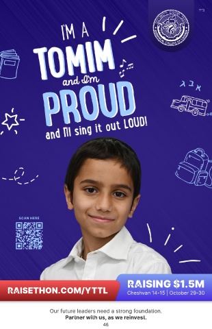 ה"ב SCAN HERE RAISING $1.5M RAISETHON.COM/YTTL Cheshvan 14-15 | October 29-30 Our future leaders need a strong foundation. Partner with us, as we reinvest. 46