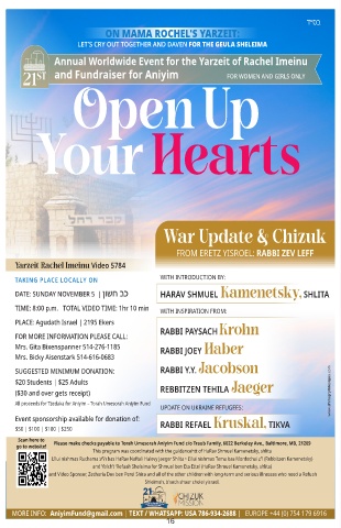 L’ilui nishmas Ruchama ע“ה bas HaRav Naftali Halevy Jaeger Shlita • L’ilui nishmas Tema bas Mordechai z“l (Rebbitzen Kamenetsky)