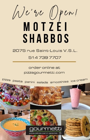 We're Open! M O T Z E I S H A B B O S 2075 rue Saint-Louis V.S.L. 514 739 7707 order online at pizzagourmetti.com pizza pasta panini salads smoothies ice cream 35