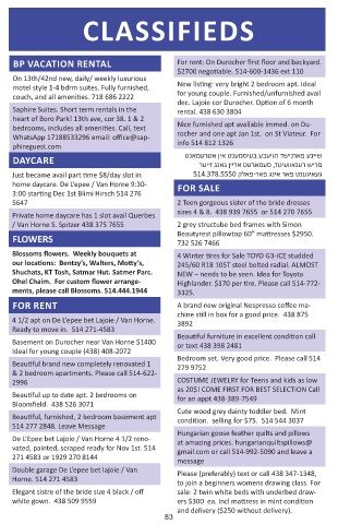 WhatsApp 17188533296 email: office@sap- rocher and one apt Jan 1st. on St Viateur. For