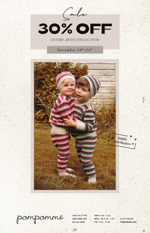 Sale 30% OFF family coordinates SHOP IN STORE SUN 12:00 - 5:00 5603 PARC AVE MON - TH 11:00 - 5:30 SHOP ONLINE 514.447.8880 FRI 10:30 - 12:00 POMPOMME.COM 21