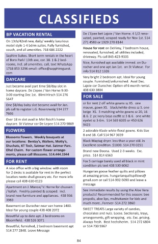 1718 853 3296 email: office@sapphireguest. rocher and one apt Jan 1st. on St Viateur. For