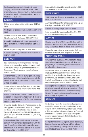 ah, Chany Stern: 514 544 3037 mer Shabbat Yossi Oron 514 996 7644