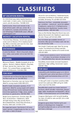 cations: Bentzy’s, Walters, Motty’s, Shuchats, apartment. High ceililng, Outremont Lajoie.