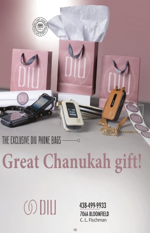 GIFT YOUR LOVED ONES GIFT YOURSELF THE EXCLUSIVE DIU PHONE BAGS Great Chanukah gift! 438-499-9933 706A BLOOMFIELD C. L. Fischman 10