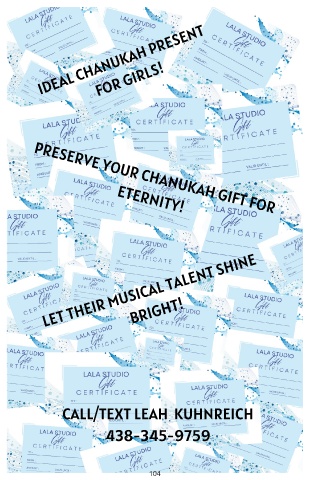 IDEAL CHANUKAH PRESENT FOR GIRLS! ETERNITY! PRESERVE YOUR CHANUKAH GIFT FOR LET THEIR MUSICAL TALENT SHINE BRIGHT! CALL/TEXT LEAH KUHNREICH 438-345-9759 104