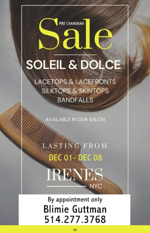 PRE CHANUKAH DEC 01- DEC 08 By appointment only Blimie Guttman 514.277.3768 46