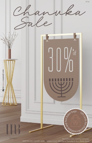 Chanuka Sale 30% * off dozigzag@gmail.com Gift cards for chanuka available and Ted Baker bags . *Excluding coats, evening and basics. 5689 Parc ave / 514.807.4638 / 72 Sunday 12 to 5 . Monday to Thursday 11 to 6 . Friday closed
