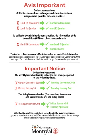 Les mises à jour apparaissent sur le Calendrier des collectes d’Outremont 2024