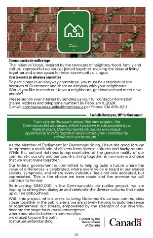 E-mail: communautes.ruelles@montreal.ca or Phone: 514 495-6211