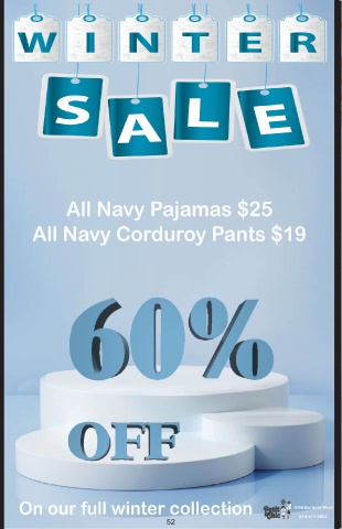All Navy Pajamas $25 All Navy Corduroy Pants $19 On our full winter collection 1046 Bernard West 52 514-271-9022