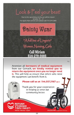Due to the upcoming simcha we will be closed January 10 - 21 For appts that cannot wait please call 514-274-2483 69