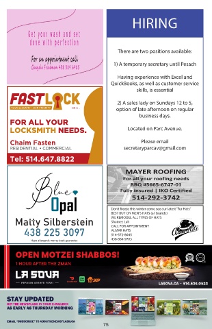 Chayale Friedman 438 389 6985 1) A temporary secretary until Pesach
