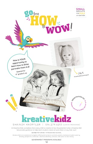 Kreative Kidz is an extensive art program offering instructions in, portraits, pastels, traditional/modern painting,